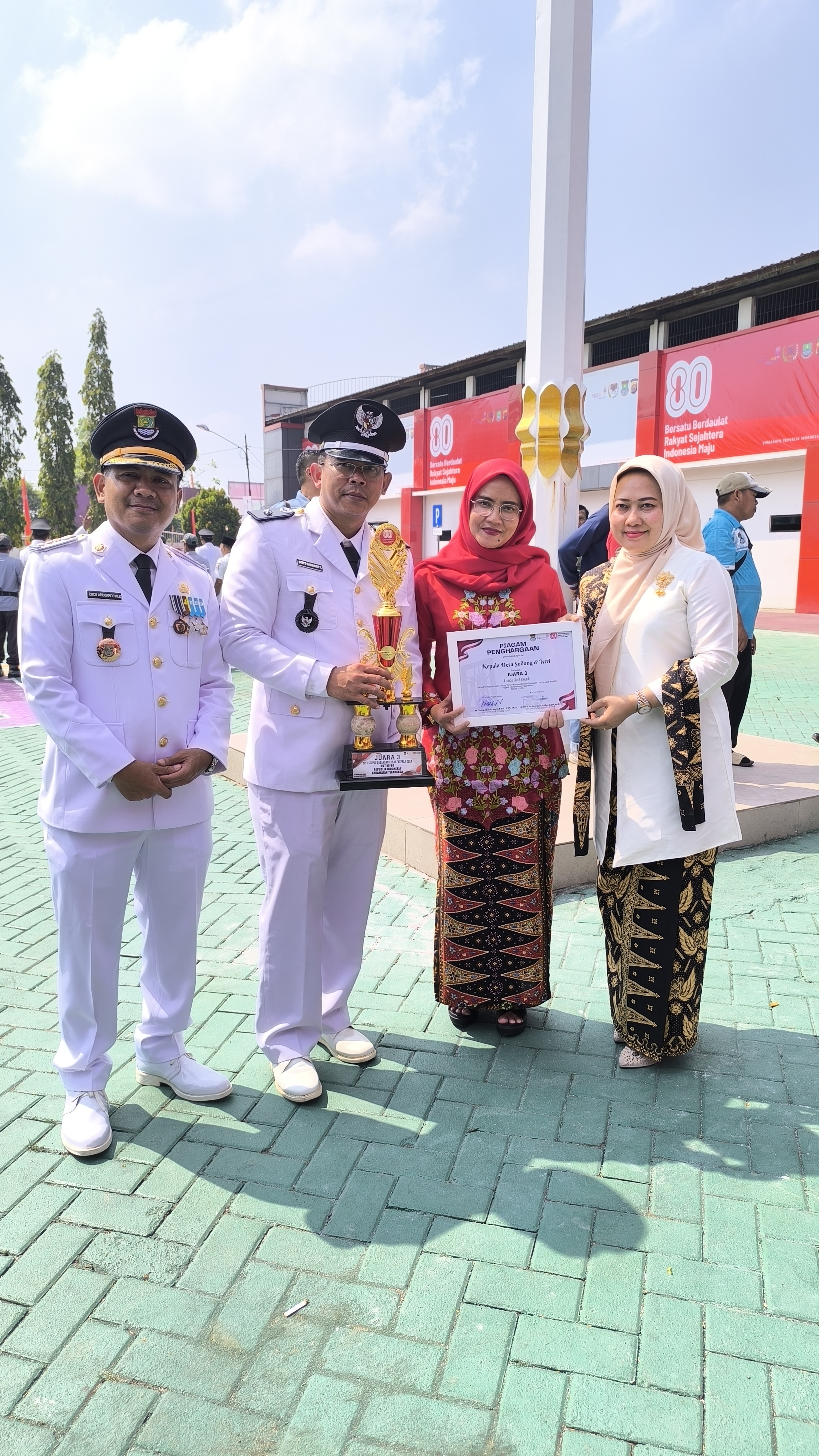 Sodong, 18 Agustus 2025 - Semangat Hari Ulang Tahun ke-80 Kemerdekaan Republik Indonesia disambut meriah oleh masyarakat Kecamatan Tigaraksa melalui berbagai perlombaan dan kegiatan yang memupuk rasa persatuan, kreativitas, dan sportivitas. Dalam rangkaian acara Semarak Kemerdekaan RI Ke-80 tersebut, Desa Sodong tampil gemilang dengan meraih sejumlah prestasi membanggakan.